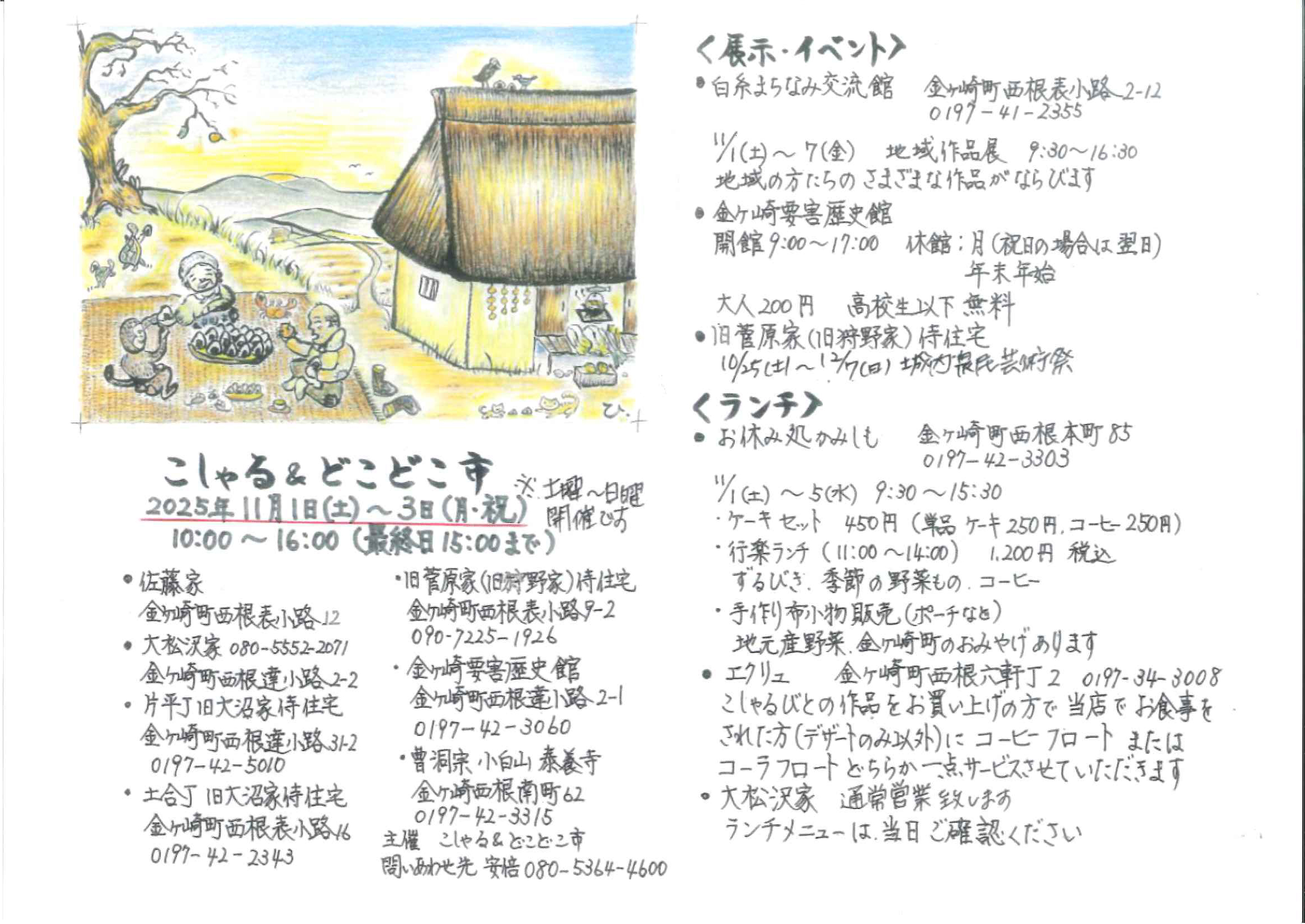 11月は、金ケ崎町の武家屋敷で開催されるイベント「こしゃる&どこどこ市」に出店いたします。利用者さんが日中活動で作成した陶芸作品、木工作品、ハンドメイドアクセサリー等を販売します。