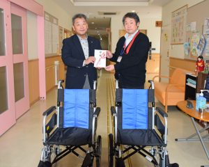 11月18日、有限会社フリーダムトラベルの代表取締役 鈴木義則様より、地域密着型特別養護老人ホーム 愛護苑に、車いす2台を寄贈していただきました。大切に使わせていただきます。